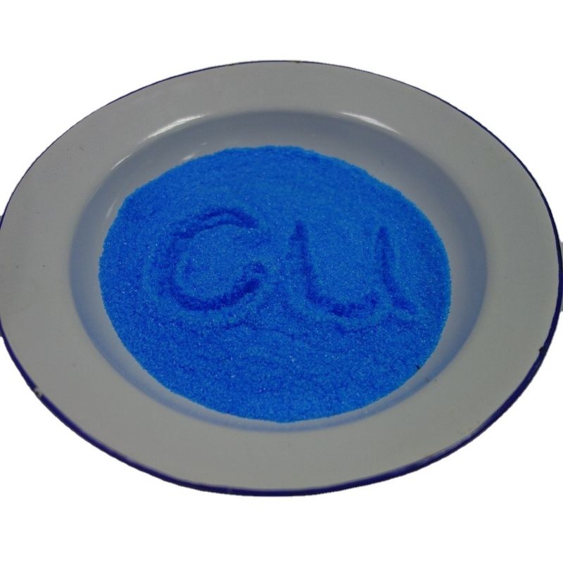 Kopersulfaatkristallen is een stabiele, in water oplosbare chemische verbinding met een molecuulgewicht van 159,61 g/mol en CAS-nummer 7758-98-7.Het heeft een pH van 5,0 (1 M oplossing) en een oplosbaarheid van 35,2 G/100 ML (20 °C).Dit product heeft een minimaal kopergehalte van 98% en een minimaal sulfaatgehalte van 25%.Het is verkrijgbaar in een blauwe kristalkorrelige vorm.Kopersulfaatkristallen worden veel gebruikt als landbouwmeststof, ontsmettingsmiddel, bijtmiddel bij het verven en bedrukken van textiel en als grondstof voor andere koperverbindingen.